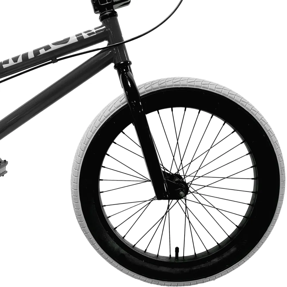 Удобная форма рамы изготовлена из прочной надежной стали, которая не деформируется, не теряет первоначальных характеристик при эксплуатации в жестких условиях. Ободные 20-дюймовые колеса гарантируют максимальный разгон и отличный накат, благодаря которым прыжки будут качественными.